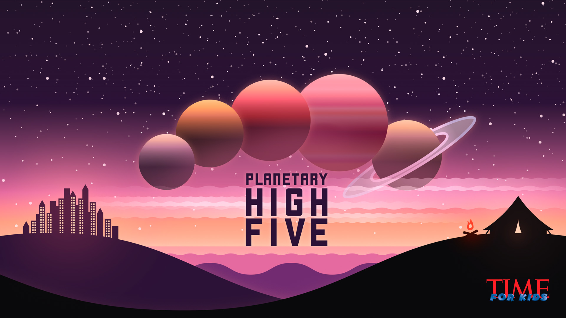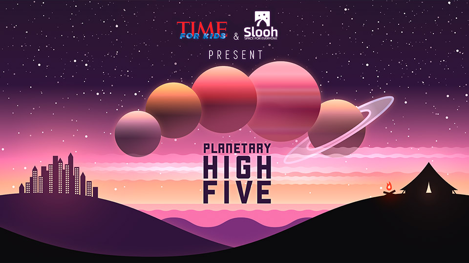 These graphics were created for a live webcast presented by TIME for Kids and Slooh, titled Planetary High Five. I designed and animated the visuals for the studio monitors, lower thirds and promotional material.