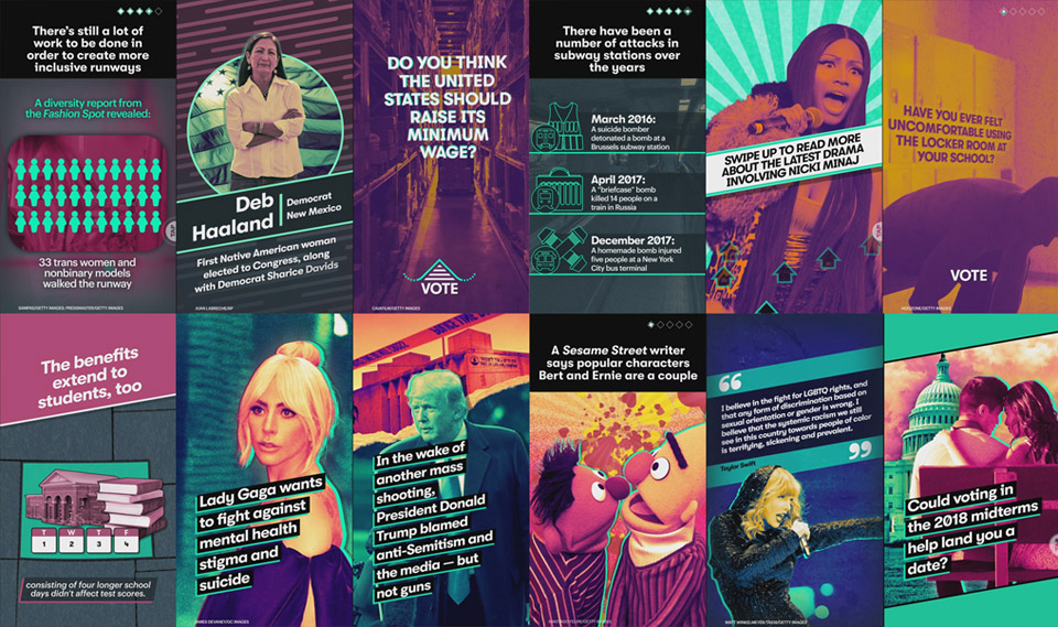 A collection of motion graphics created for Mic's daily Snapchat stories. Click here to view a collection of Snapchat tiles.