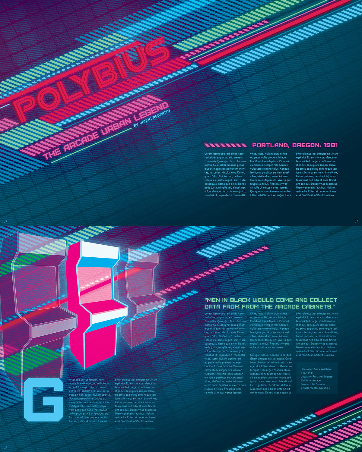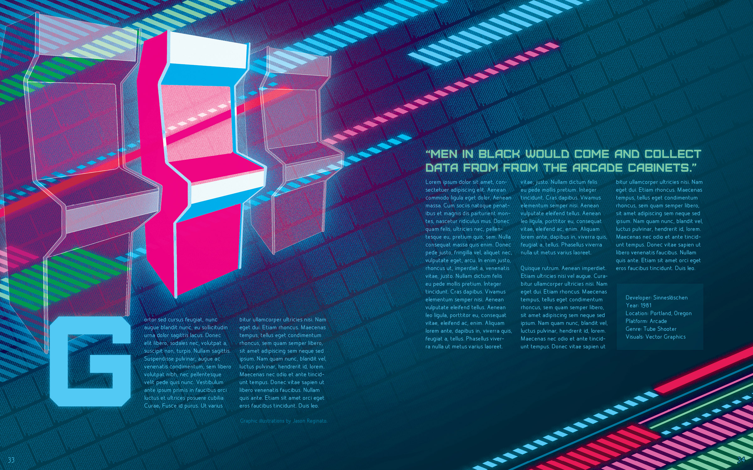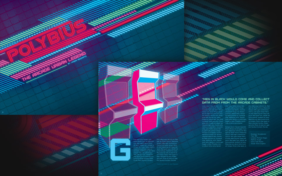 Article layout and graphics for an urban legend about a 1980s arcade cabinet.